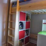 - Raised level child’s bed with shelving and desk below. Crouch End